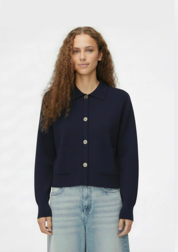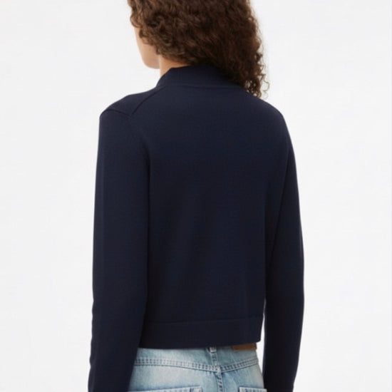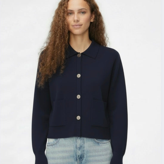 Perfect for layering or wearing on its own, the Volante Cardigan Navy is a timeless wardrobe essential. Pair it with crisp white denim for an effortlessly chic, modern look.