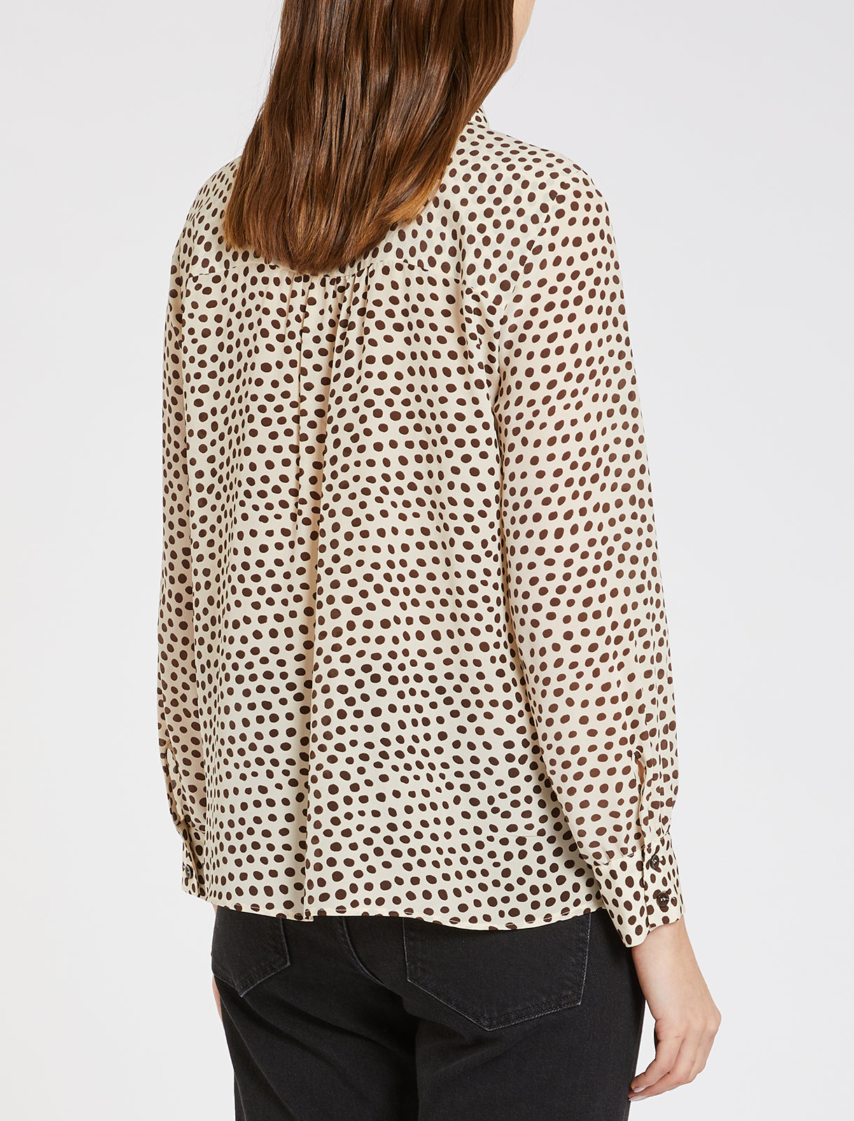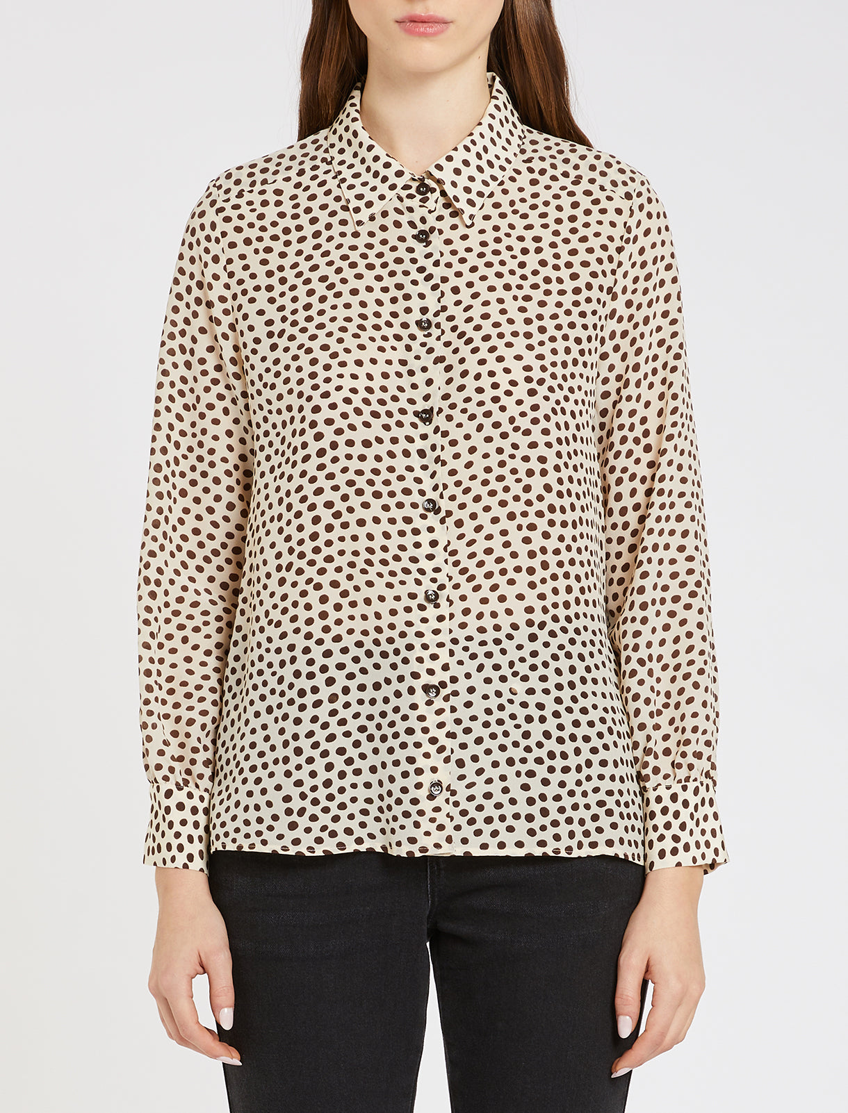 Light, refined, and endlessly versatile, the Vulcano Shirt in cream is a timeless wardrobe staple with a contemporary twist. Made from luxurious printed silk crepe de chine, it features a subtle dark spot pattern scattered across a soft cream background - delivering understated elegance with a touch of character.