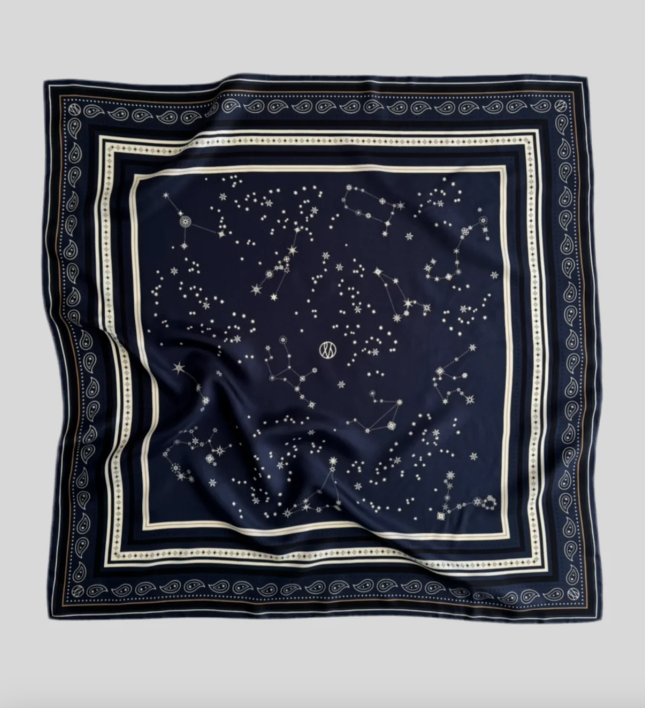 Mystical, elegant, and timelessly chic - the Zodiac Scarf in Navy by lescarf is a striking statement piece designed to elevate everyday styling. Crafted from luxurious silk and cut in a generous 80cm square, this beautifully detailed scarf features a rich navy base, adorned with a celestial zodiac print at the centre that captures the imagination.